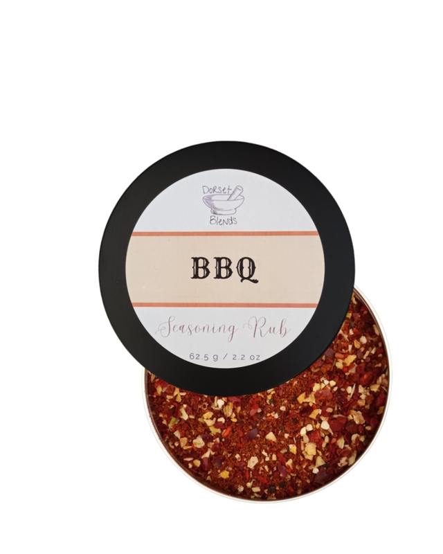 Dorset Blends create the exciting and mouth-watering, and all our Seasoning Rubs are hand crafted. Our very own BBQ Seasoning Rubs, bring together a little bit sweet, a little bit smoky, and are loaded with bags of vibrant barnstorming spices and flavour! Sweet and smoky paprika combines with chilli, garlic and dark brown sugar to release their oils and fragrance, delivering a punch of flavour in every bite. A real lip-smacker, Dorset Blends BBQ Seasoning Rubs are versatile - rub into chicken, pork, beef, veggies before you grill, smoke, or BBQ; add to a marinade; or a yogurt or mayo for a dip - nothing beats homemade BBQ potato wedges, a Dorset Blends family favourite that can be enjoyed year round and not just Summer! All our rubs are supplied in a tin for freshness. ALLERGENS Ingredients: NONE. Other Ingredients: Dark Brown Sugar, Sweet Paprika Flake, Smoked Paprika, Dried Minced Garlic, Chilli Powder, Dried Minced Onion, Natural Fine Sea Salt, Black Pepper, Cayenne Pepper 62.5g