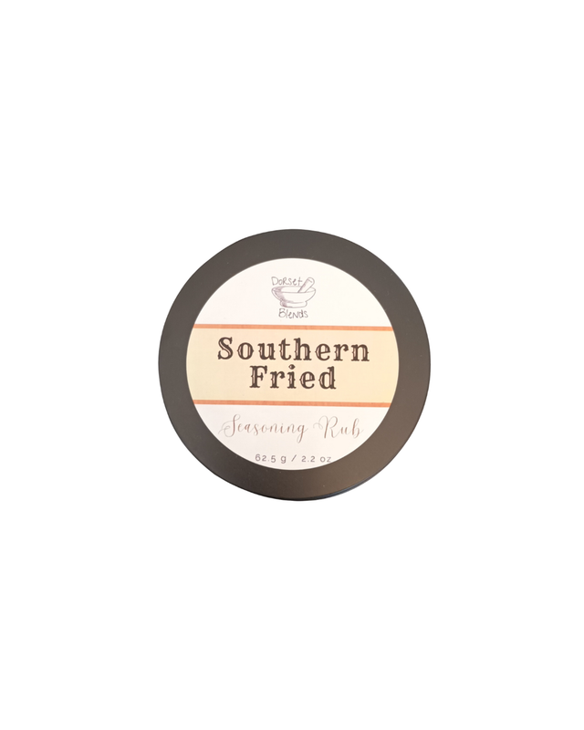 At Dorset Blends we are all about flavour and our hand crafted Southern Fried Seasoning Rubs will really pack a punch! Paprika, garlic and onion combine with selected mixed herbs to release their oils and excite the taste buds, and unlike that big well known takeaway brand, Dorset Blends Southern Fried Seasoning Rubs contain no MSG's, just natural ingredients and flavour! A versatile mix, Southern Fried Seasoning Rubs are not just for chicken. Try using on potato wedges; making a dip or marinade; other meats like pork; or prawns and white fish. Combine with panko breadcrumbs for a tasty coating with a bit of crunch, or even create a spicy sauce - at Dorset Blends we've tried it many ways, the favourite is still fried chicken! All our Seasoning Rubs are supplied in a tin for freshness. ALLERGENS Ingredients: YELLOW MUSTARD SEED, CELERY SEED. Other Ingredients: Paprika, Dried Minced Onion, Natural Fine sea salt, White Pepper, Basil, Thyme, Ground Black Pepper, Oregano 62.5g